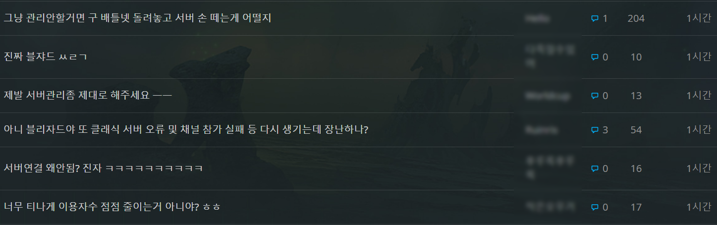 블리자드 코리아 홈페이지 게시판에 항의하는 글들이 수두룩합니다.