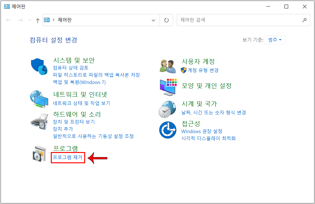 3. 제어판에서 프로그램 제거에 들어갑니다.