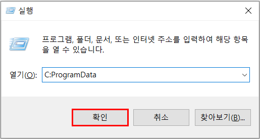 C:ProgramData 라고 입력하고 확인 누르세요.