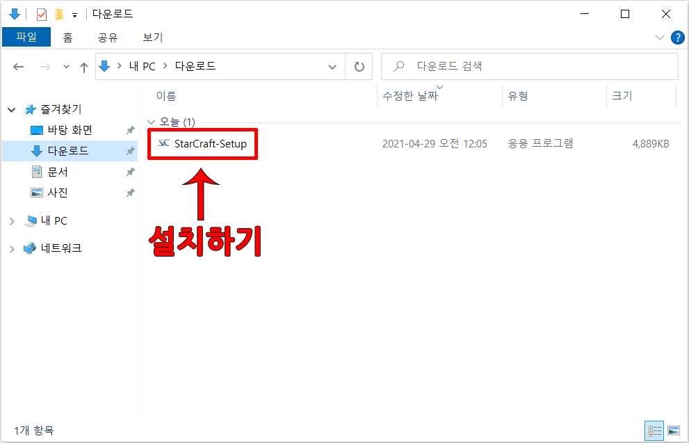 12. 다운로드 폴더에 설치파일이 다운되어 있습니다.