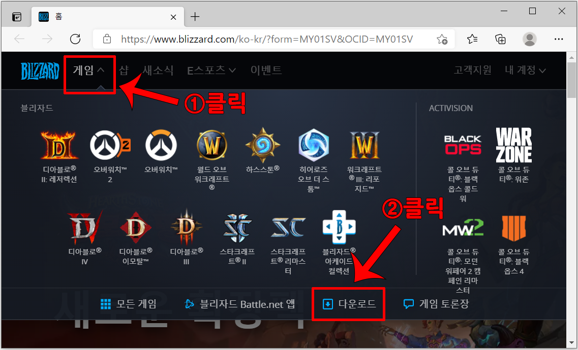 10. 블리자드 홈페이지에서 다운로드를 클릭합니다.