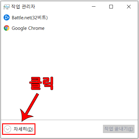 1. 키보드에서 Ctrl + Shift + Esc 동시에 누르면 작업 관리자가 실행됩니다.